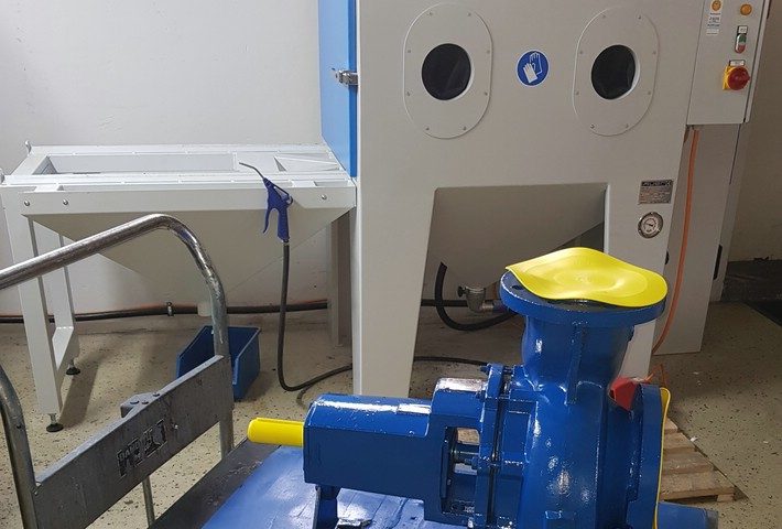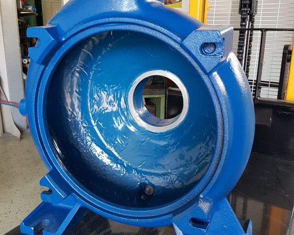 Beschichtungsarbeiten an einer Neupumpe und einem Pumpengehäuse