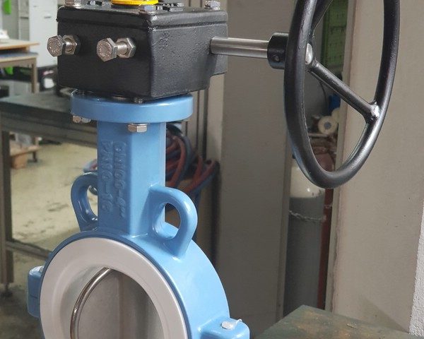 Lieferung von einer Absperrklappe mit einem Sealtekâ Armaturengetriebe ST-TMWG-225. Die Absperrklappe hat eine PTFE-Auskleidung und ist für Lösungsmittel haltige geeignet….Weiterlesen→