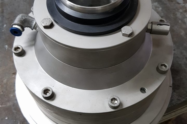 Lieferung von einer doppelt-wirkenden Gleitringdichtungseinheit – Back-to-Back-Anordnung – Durchmesser Ø110 mm, Gleitflächenpaarungen: Keramik/Hartkohle – gefülltes PTFE/Keramik; eingesetzt wird diese Einheit…Weiterlesen→